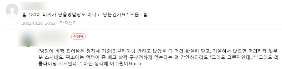 단점이 헤드룸이 될 같고, 장점이 더 편한 자세를 만들어주는데, 불편할 정도인지는 제가 꼭 체크해 볼게요!