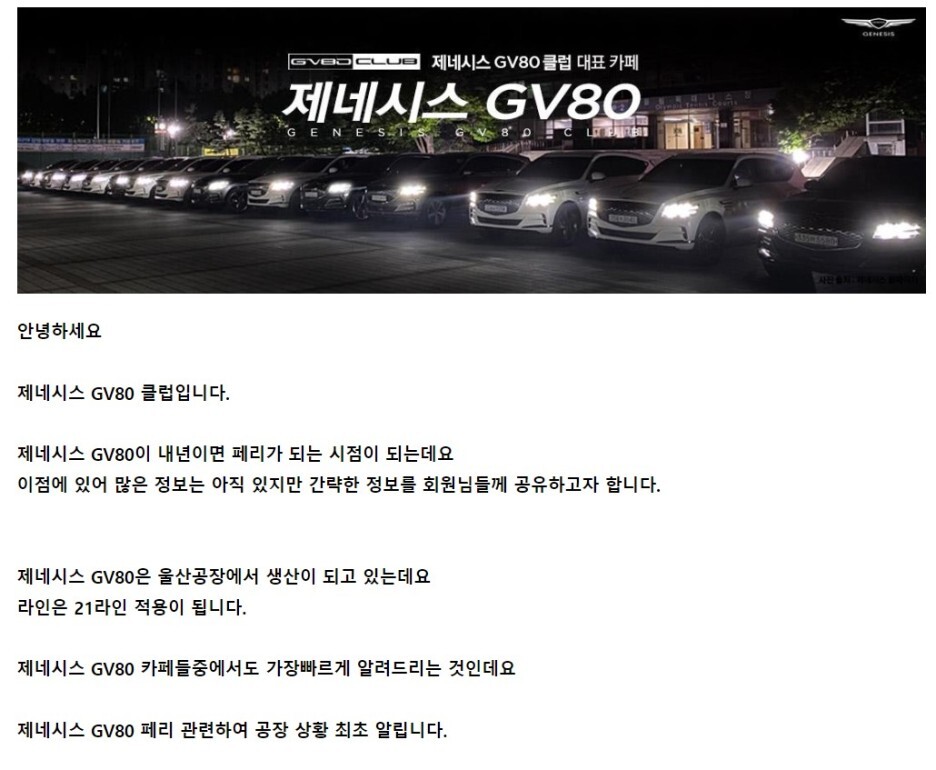 GV80의 빠른 소식을 전달하는 GV80 클럽에서도 이미 일 년 전부터 이런 소식을 알려지기 시작했습니다.