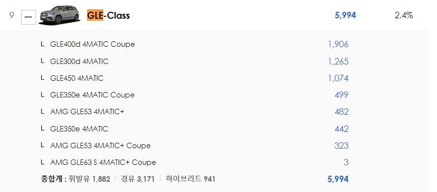 벤츠로 GLE 쿠페를 올해만 2700대 이상 판매했습니다.