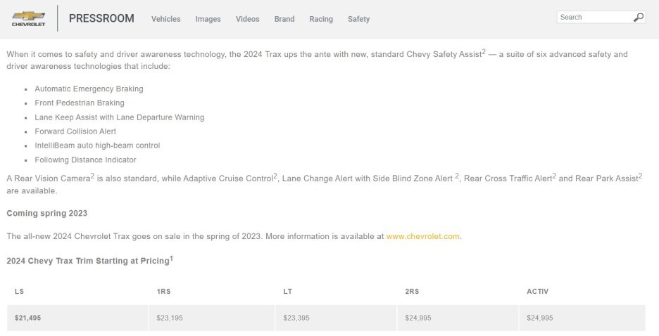 트랙스 풀체인지인 신형 트랙스의 가격이 미국에서 공개되었습니다.