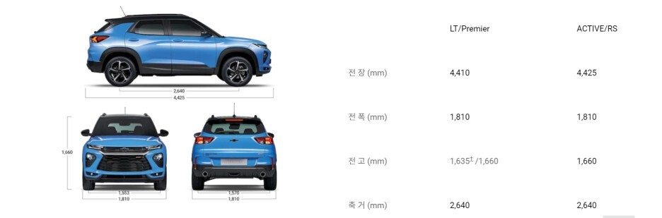 확실히 최신 차량처럼 보이는 신형 트랙스 중에서 디자인과 함께 꼭 체크해야 할 부분은 전고가 될 것 같네요.