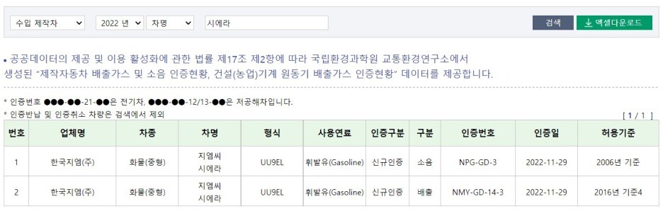 시에라의 국내 출시 소식은 오래전부터 알려졌지만.. 인증 완료되어야 출시될 수 있죠?