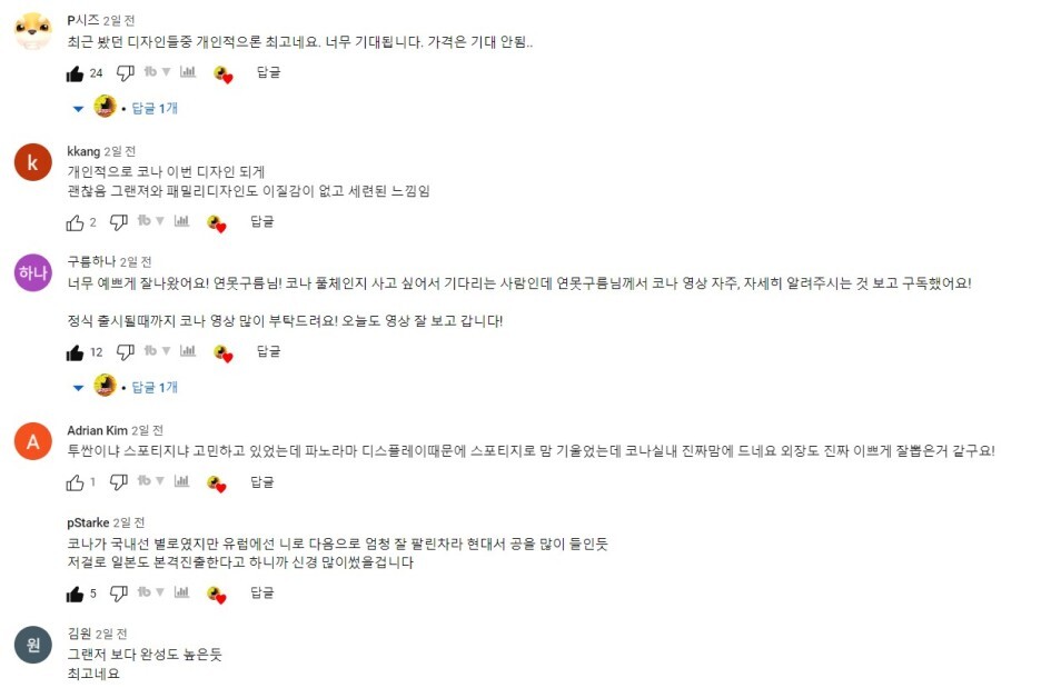 여러 번 코나를 영상으로 소개하면서, 신형 코나의 반응이 가장 뜨거운 것 같아요!