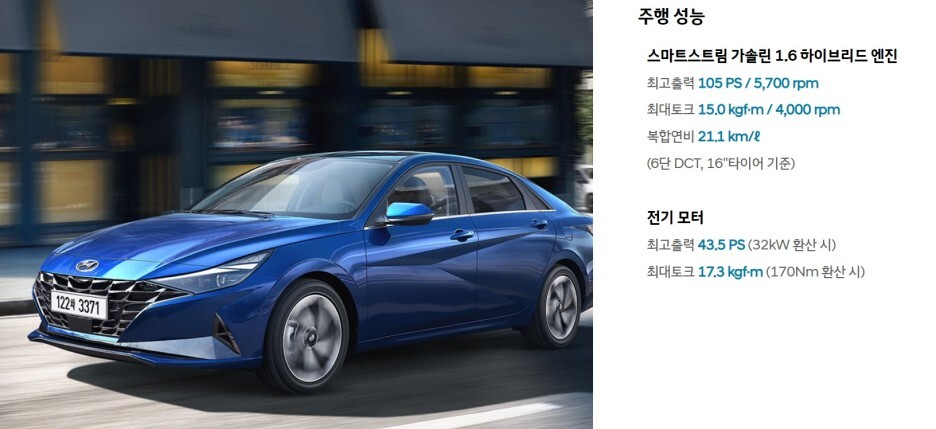 두 번째 하이브리드 차량은 아반떼입니다.
