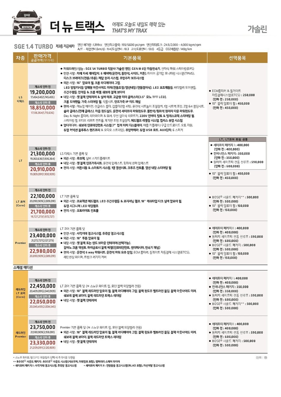 이럴 때 신형 트랙스가 기본 트림에 해당되는 LS 트림만큼은 착한 가격에 구성해 준다면..