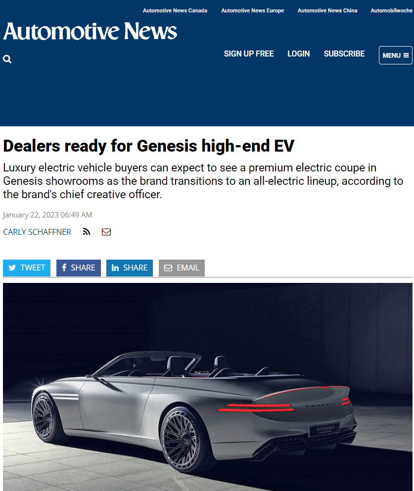 이런 야심을 노골적으로 표시한 것인지.. 루크 동 커 볼커는 미국 제네시스 딜러들과 회의 자리에서 양상 계획을 언급했다면