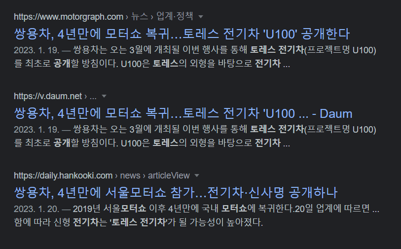 다음 영상에서는 모터쇼에서 토레스 양산차를 직접 보면서 배터리를 포함한 궁금했던 정보를 준비해 보겠습니다.