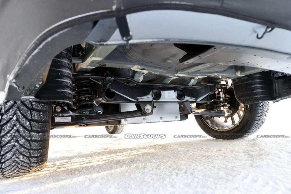 새롭게 포착된 하체는 타이어 안쪽에 휠 커버가 추가로 장착되어 있으며, 방수처리 과정만 추가된다면