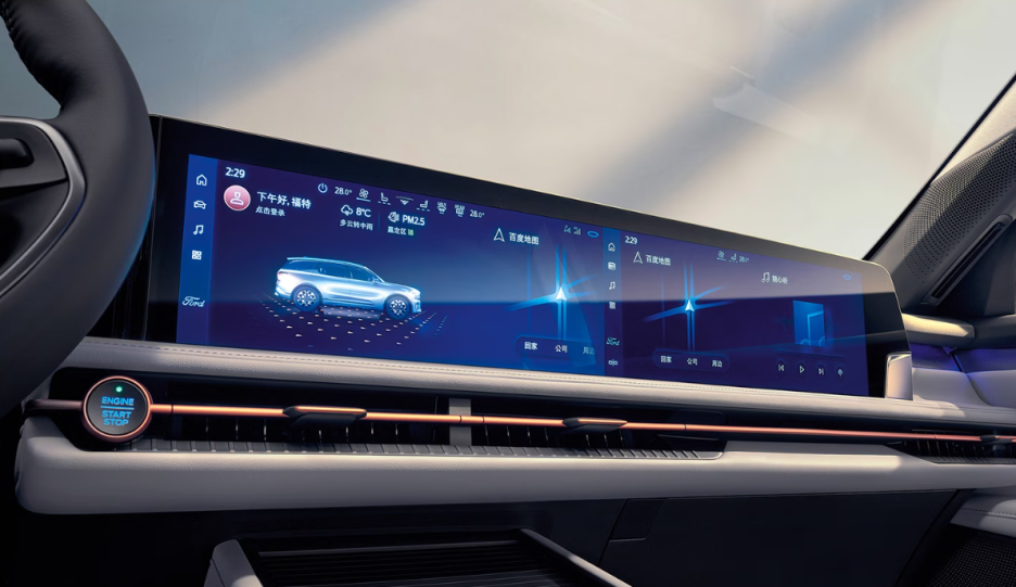 독특한 디자인의 전자 변속 기어를 볼 수 있는데, 둔탁했던 포드 디자인은 어디로 사라진 것일까요?
