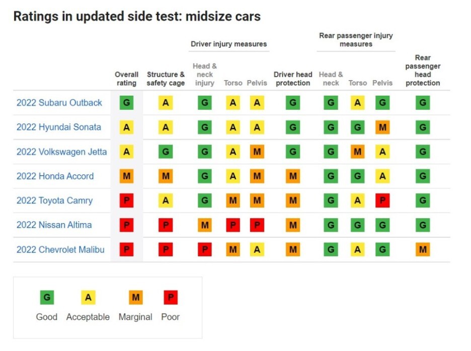 예상외로 말리부는 강화된 충돌 테스트에서는 P 등급 나쁨으로 평가받았습니다.