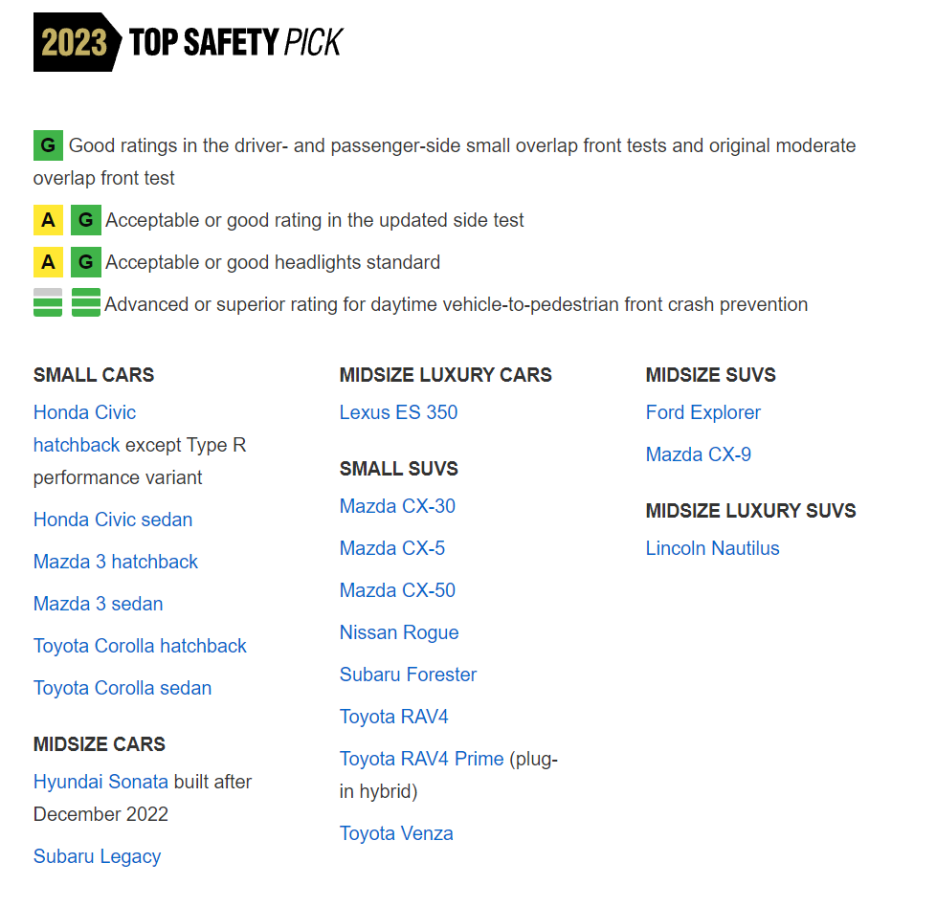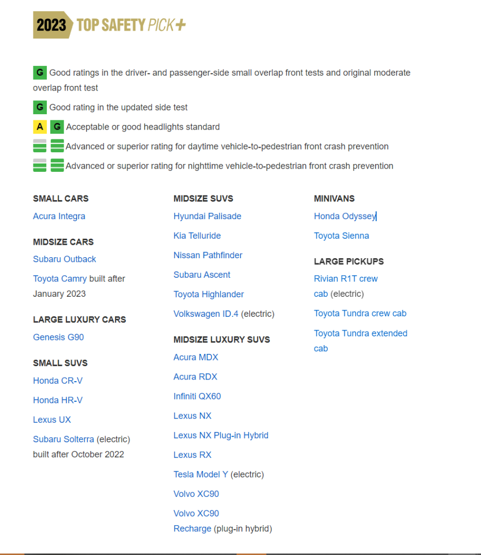 그리고 올해 첫 번째로 IIHS는 2023년 평가 결과를 공개했습니다.