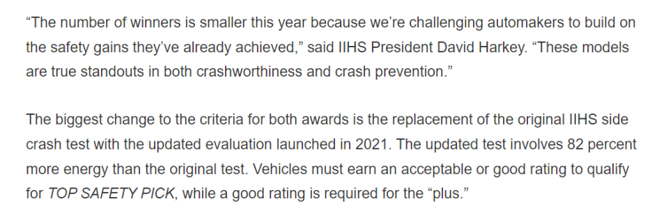 그리고 작년 여름에 IIHS는 더욱 깐깐해진 기준의 충돌 테스트를 23년부터 시행한다고 발표했어요!