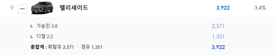 대형 SUV 부동 1위 팰리세이드의 인기는 정말 꾸준합니다.