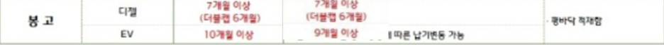 납기 기간은 가솔린 6개월 이상, 디젤 2개월로 디젤이 단종 추세이지만