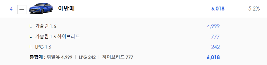 신형 그랜저의 경우 하이브리드와 가솔린 2.5가 절대적으로 많이 선택하고 있는데