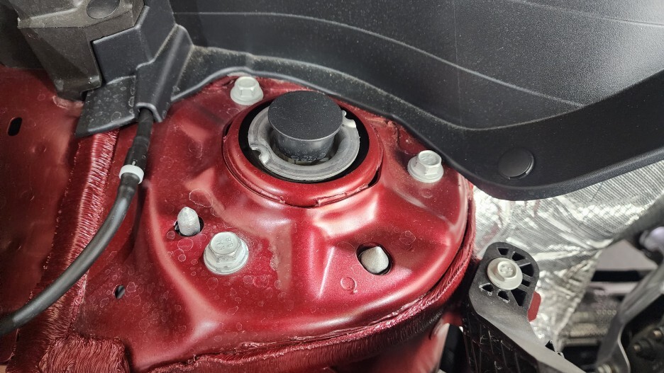 신형 트랙스는 마운트 부분을 국내 차량과 동일하게 3개의 볼트로 체결하고 여기에 2개의 사이즈가 다른 구조물로 보강해서