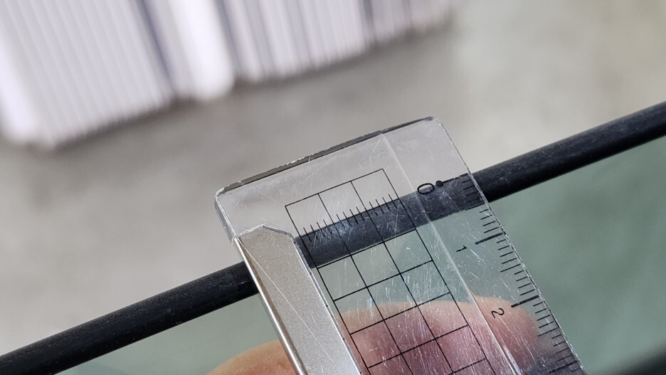 신형 트랙스 1열 유리의 두께입니다. 5mm 정도가 되는 엄청난 두께감을 자랑합니다.