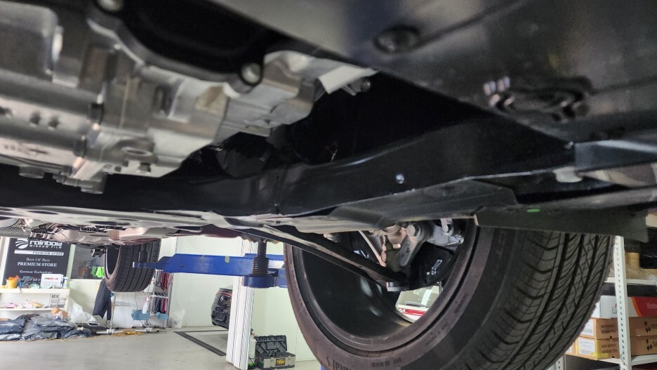 엔진을 받치는 서브 프레임의 두께도 중형급 차량의 서브 프레임을 보는 것처럼 튼튼한 것을 눈으로 확인할 수 있습니다.