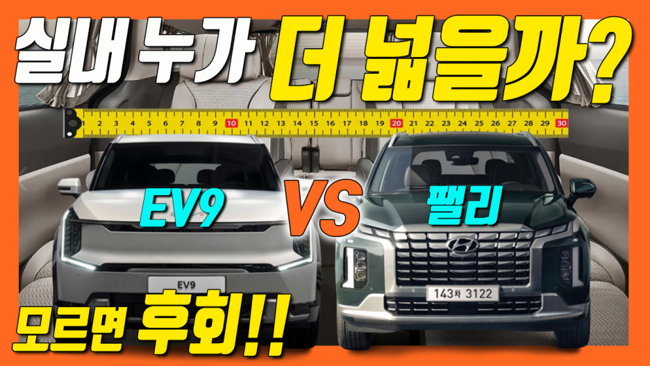 이유는 채널에 전기차 EV9이 출시되고, 대형 SUV 팰리세이드와 실측자료로 실내 공간과 트렁크 공간을 정밀 비교 드렸죠?