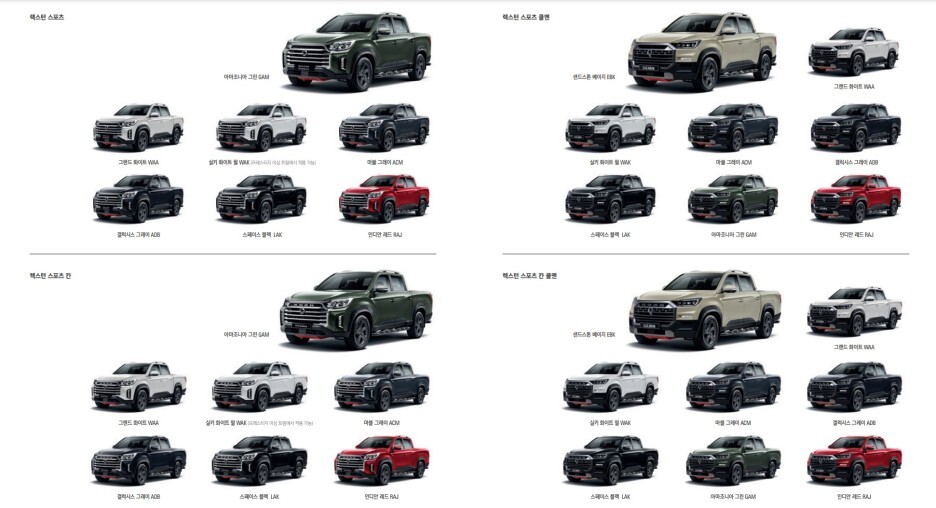 결론적으로 렉스턴 뉴 아레나는 7가지 외장 컬러를 선택할 수 있으며