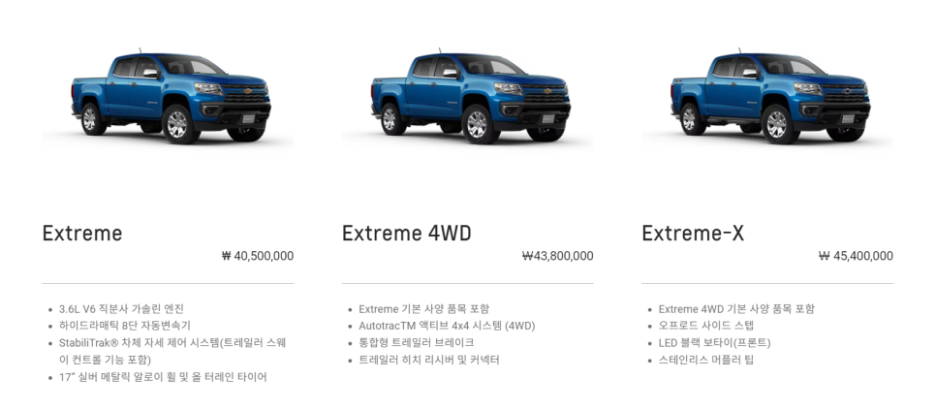 기존 콜로라도는 수입 픽업 대비 가성이 높은 가격에 출시되면서 수입 부동 1위 픽업트럭의 대명사가 되었습니다.