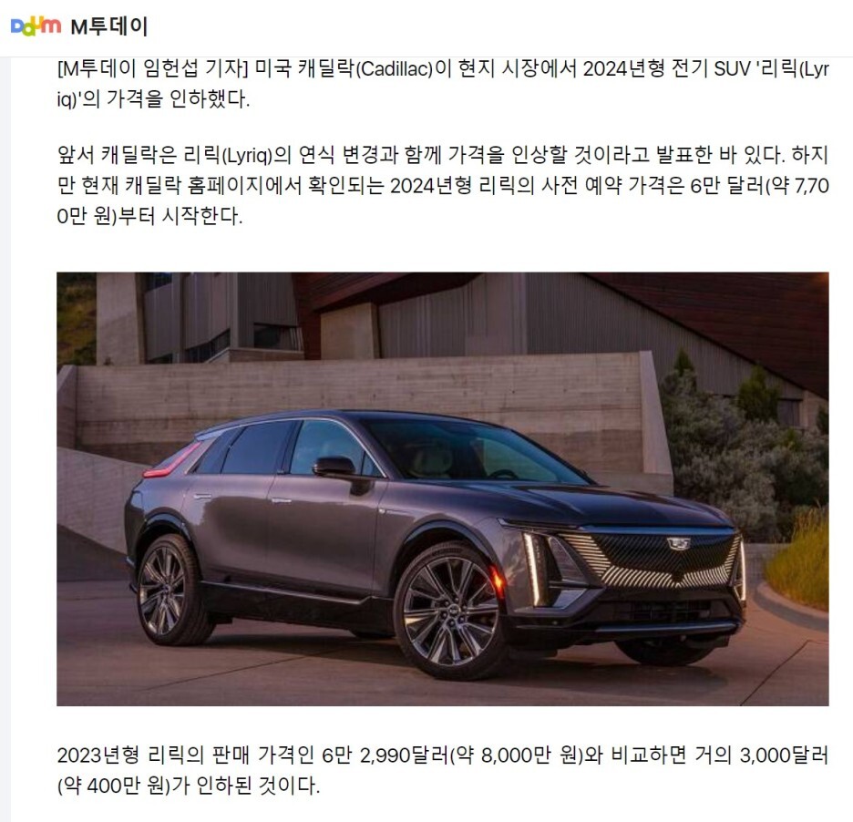 차원이 다른 캐딜락 리릭 전기차! 하반기 국내 출시 확정!