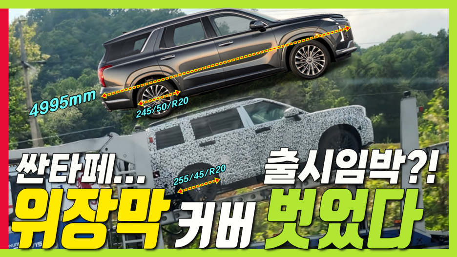 팰리세이드의 전장이 4995mm 임을 고려해 본다면, 신형 싼타페는 아무리 커져도 4900mm가 넘은 가능성은 채널 예상에는 희박할 것 같습니다.
