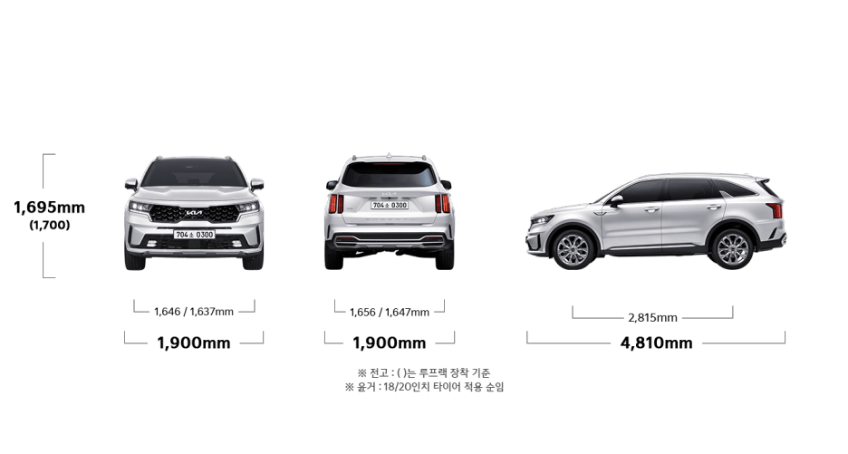 따라서 오차 범위는 결국 현재의 쏘렌토보다 약간 커질 수 있는 범위입니다. 쏘렌토 전장이 4810mm인데 앞뒤 범퍼 형상이 다르기 때문에 조금 커질 수 있겠죠? 하지만 동일 플랫폼 관점에서 본다면 커질 수 있지만 4900mm에 도달한 가능성 역시 희박합니다.