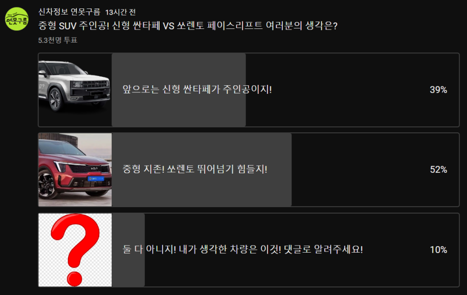 신형 싼타페 VS 쏘렌토 페이스리프트! 중형 SUV 왕좌! 여러분 선택은?