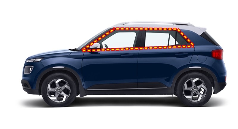 A 필러 B 필러 C 필러와 루프 전체 그리고 루프 레일까지 모두 블랙 색상으로 마감하면서