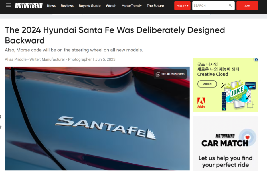 신형 싼타페를 디자인하는 과정에서 일반적이라면 전면에서 시작했던 관행과 다르게 후면부터 디자인했다고 언급하면서 과연 어떤 부분인지 궁금증을 자아냈죠?