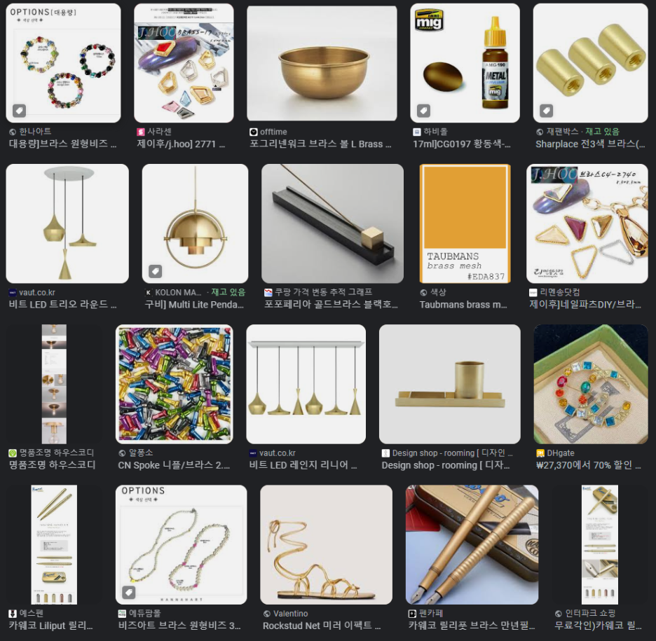 브라스 색상이 은은한 골드와 같은 색상에 방짜유기 같은 은은한 고급감이 추가된 색상입니다.