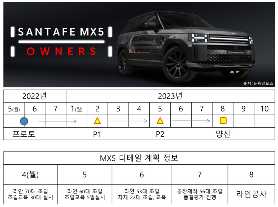 8월 라인 공사를 포한한 초도 생산이 시작될 것 같은데.. 일반적으로 이쯤에 공개를 하기 때문에, 현재 상황이라면 8월에 공개될 가능성이 높다고 할 수 있습니다.