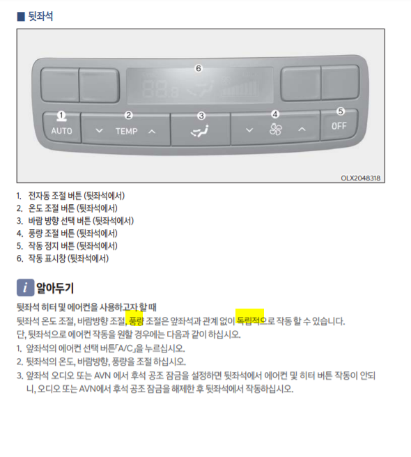 3열이 제공되는 현대차 팰리세이드에도 2열 독립 공조 기능은 온도, 풍향과 풍속이 따로 조절됩니다.