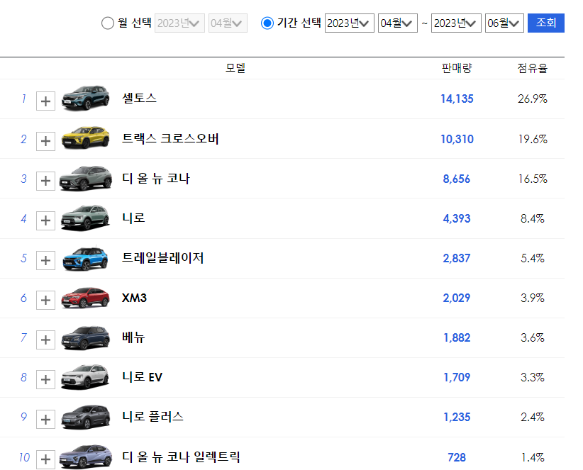 이런 전략은 국내 소비자의 지갑을 열게 만들었고 결국 성공적인 마케팅으로 소형 SUV 판매량 TOP2를 꾸준히 기록하고 있습니다.