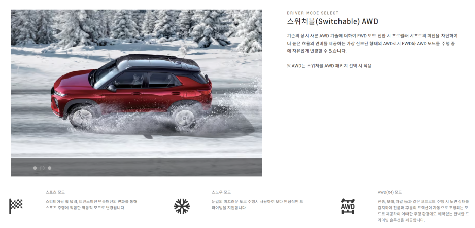 트레일블레이저는 4륜과 2륜을 버튼으로 전환할 수 있는 기능이 제공됩니다.