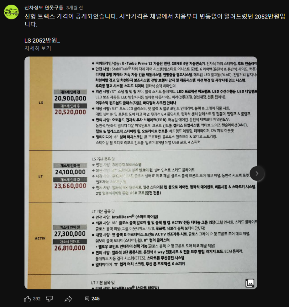 트랙스와 비교해서 알려드렸죠? 아직 못 보셨다면 채널의 영상을 참고하세요!