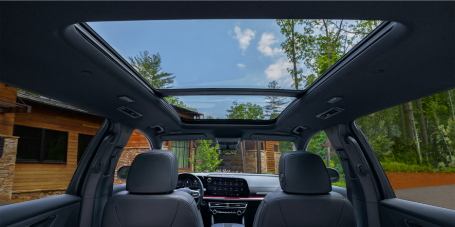 1열과 2열 위에는 파노라마 선루프가 제공되는데.. 사이즈가 시원시원합니다. 측면에는 세로 타입 천정형 송풍구가 제공되는데..