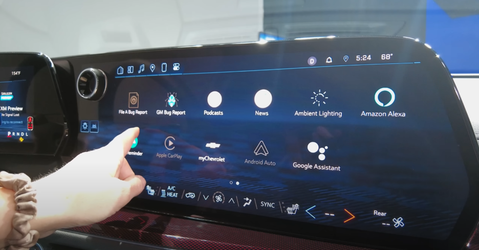 11인치 계기판 디자인은 이렇게 생겼습니다. 전기차 같은 시원시원한 UI에 양쪽에 3개의 폴더처럼 구분해 놓았습니다.