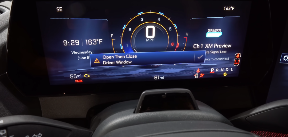 우측 하단에는 승객 안전벨트 착용 여부를 보여주며, 드라이브 작동 상태를 보여줍니다.