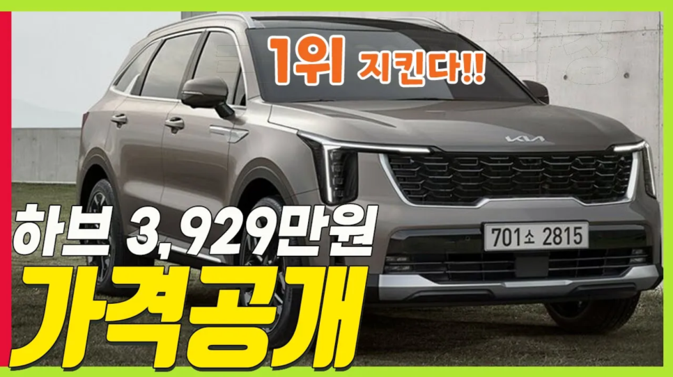 신형 쏘렌토 페이스리프트 하이브리드 3929만원! 3천만원대 지켰다! 기존 가격보다 156~200만원 인상!