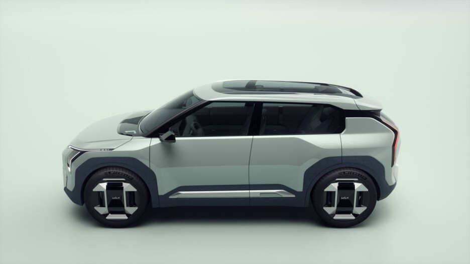 이 각도에서 보면 영락없는 EV9 이군요! 특히 1열과 2열 도어 양쪽에 삼각형 디자인은 EV9에서 처음 선보인 디자인으로 앞으로 출시될 SUV 전기차에 공통 분모가 됩니다.