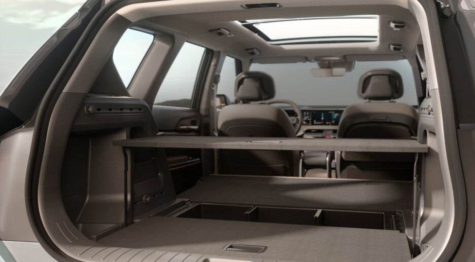 후면부도 영락없는 EV9처럼 보입니다. 전면부와 통일감을 부여하는 스타맵 시그니처 테일램프는 큰 차량처럼 보일 수 있게 테일램프는 양쪽 끝으로 이동하고, 수직형 디자인으로 압도적인 존재감을 보여줍니다.