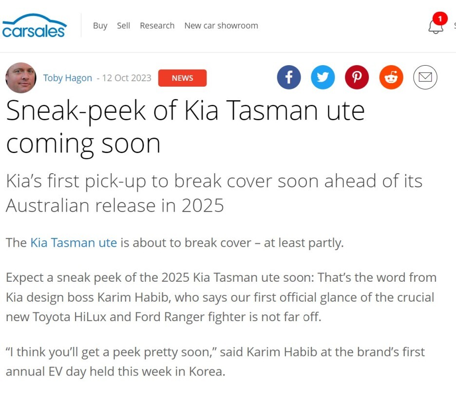 깜짝 뉴스부터 알려드리면, 해외매체인 #카세일즈 를 통해서 44년만에 출시될 기아 픽업트럭인 타스만의 티저가 올해내에 공개될 수 있다는 소식이 올라왔습니다.