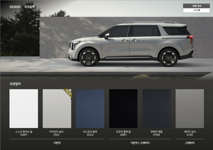 마지막으로 외장 색상은 총 7가지로 이번에 신규 컬러인 아이보리 실버가 추가되었습니다.