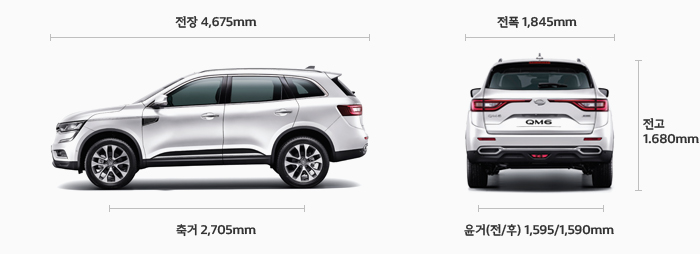 경쟁차량과 기존 QM6는 최소 100mm 이상의 큰 차이가 있었죠!