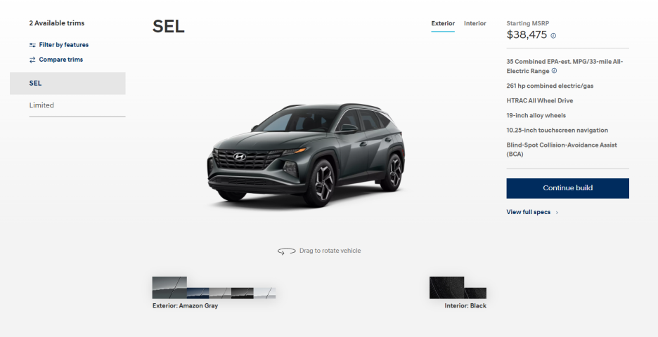 이번에는 플러그인 SEL 트림입니다. 가격은 38475 달러입니다.