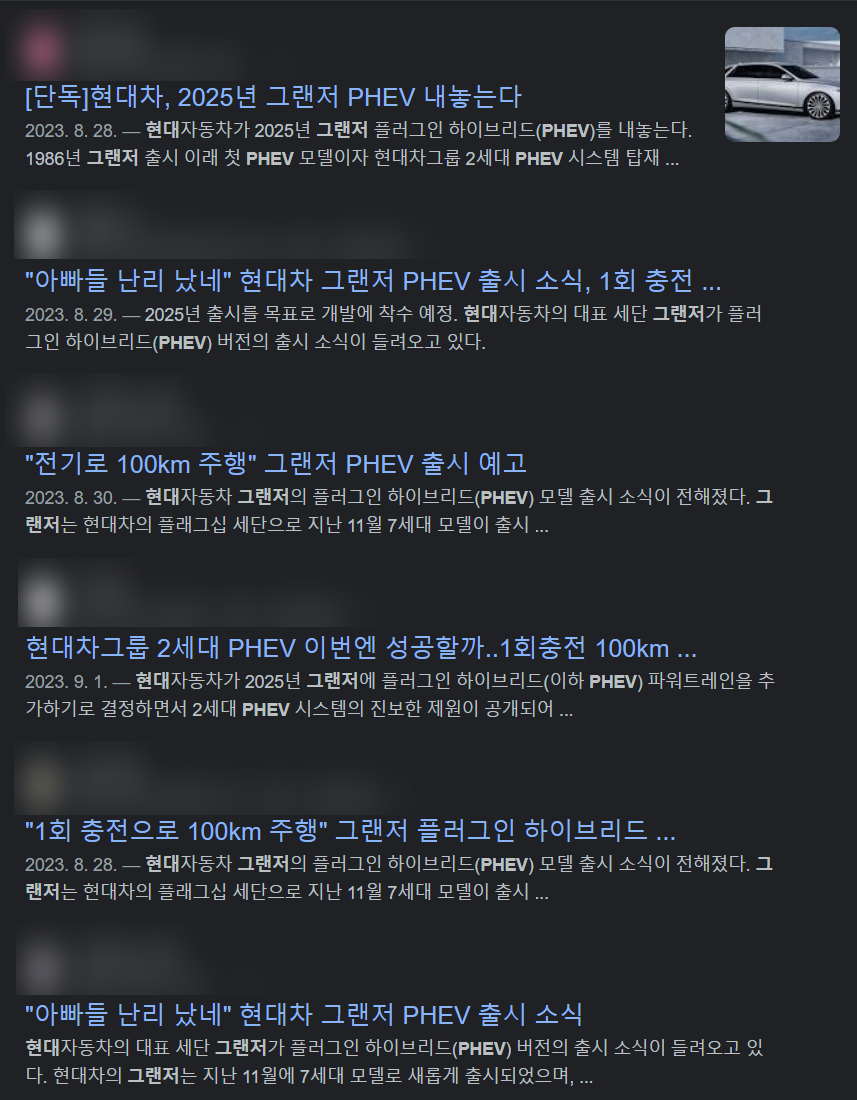 현대 플래그십 그랜저는 25년에 플러그인 하이브리드 방식을 추가하는 것으로 알려졌습니다.