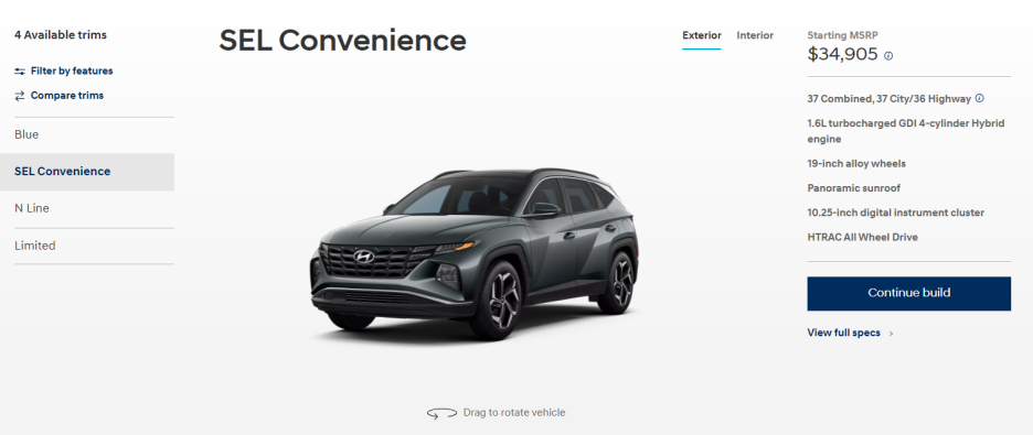 이번에는 하이브리드 SEL 트림입니다. 가격은 34905 달러입니다.