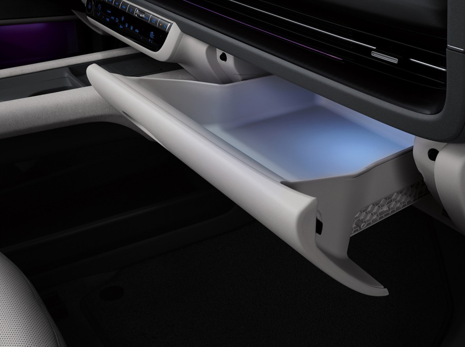 센터 콘솔이 움직이게 설계가 되어서 뒤로 이동해 놓은 것인지 또는 냉장고 신발장 등의 역할을 추가하면서 커진 것인지 알 수 없지만 EV9과 다른 기능을 제공할 수 있을 것 같네요!
